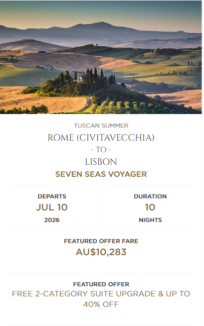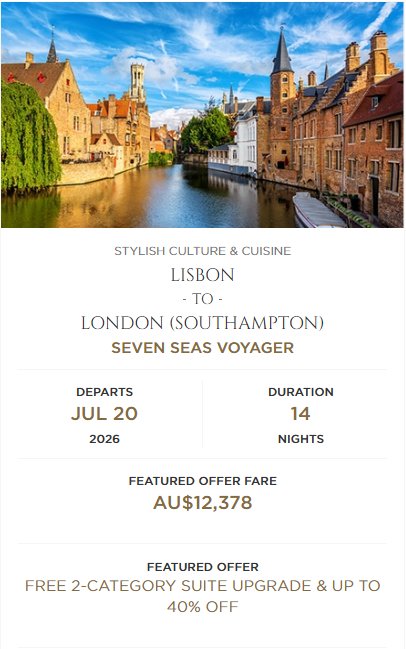 Savings on all 2025 - 2027 sailings.  Offer only valid on new bookings from 1 Oct - 7 Nov 2025.*